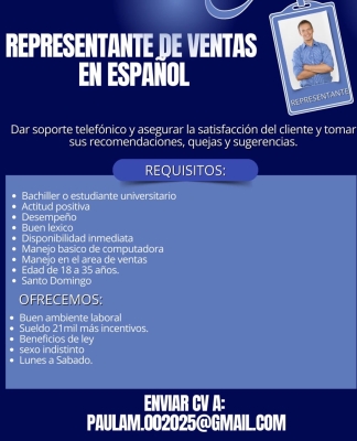 El representante de ventas es responsable de prestar el servicio al cliente, asesorar y ofrecer productos y materiales eléctricos según los requerimientos de cada cliente, bien sea dar soluciones residenciales,...